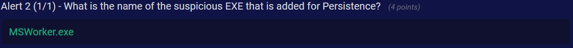 Q3) Alert 2 (1/1) - What is the name of the suspicious EXE that is added for Persistence?
